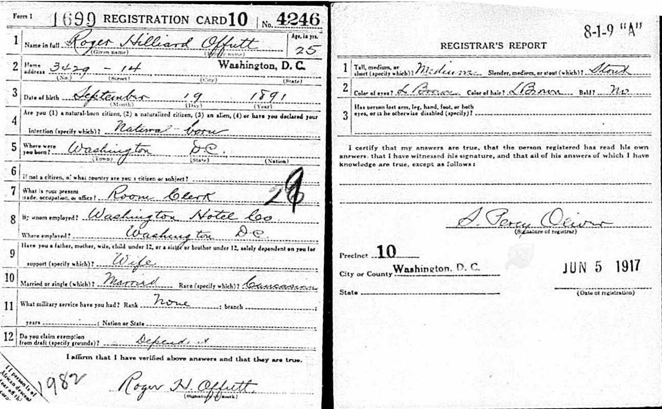 World War I Draft Registration; Roger Hilliard Offutt