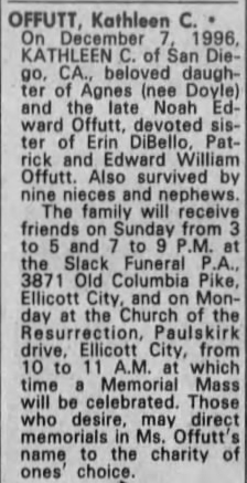 Printed in the Sunday, December 8, 1996 edition of The Sun on page 7B