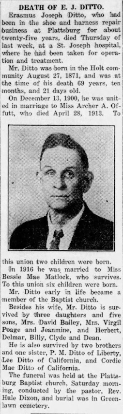 Obituary of Erasmus Joseph Ditto
