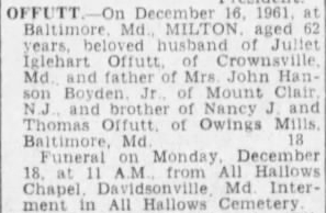 Printed in the Sunday, December 17, 1961 edition of The Sun on page 11D