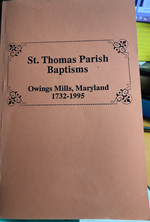 Cover page of St. Thomas Parish baptisms : Owings Mills, Maryland, 1732-1995