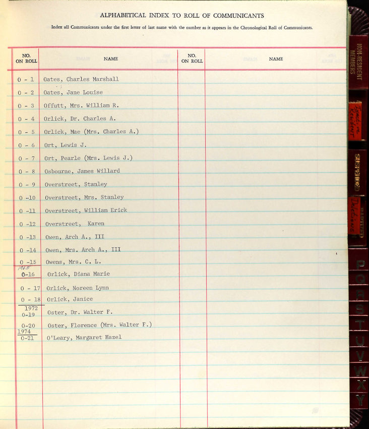 Index of Communicants Surname begins with O