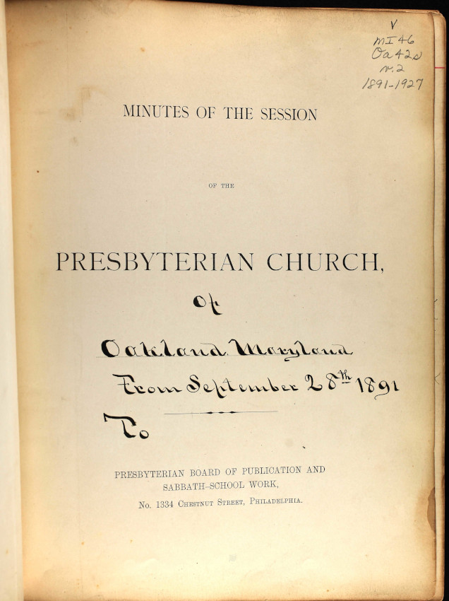 Oakland Presbyterian Church Register 1891 - 1927