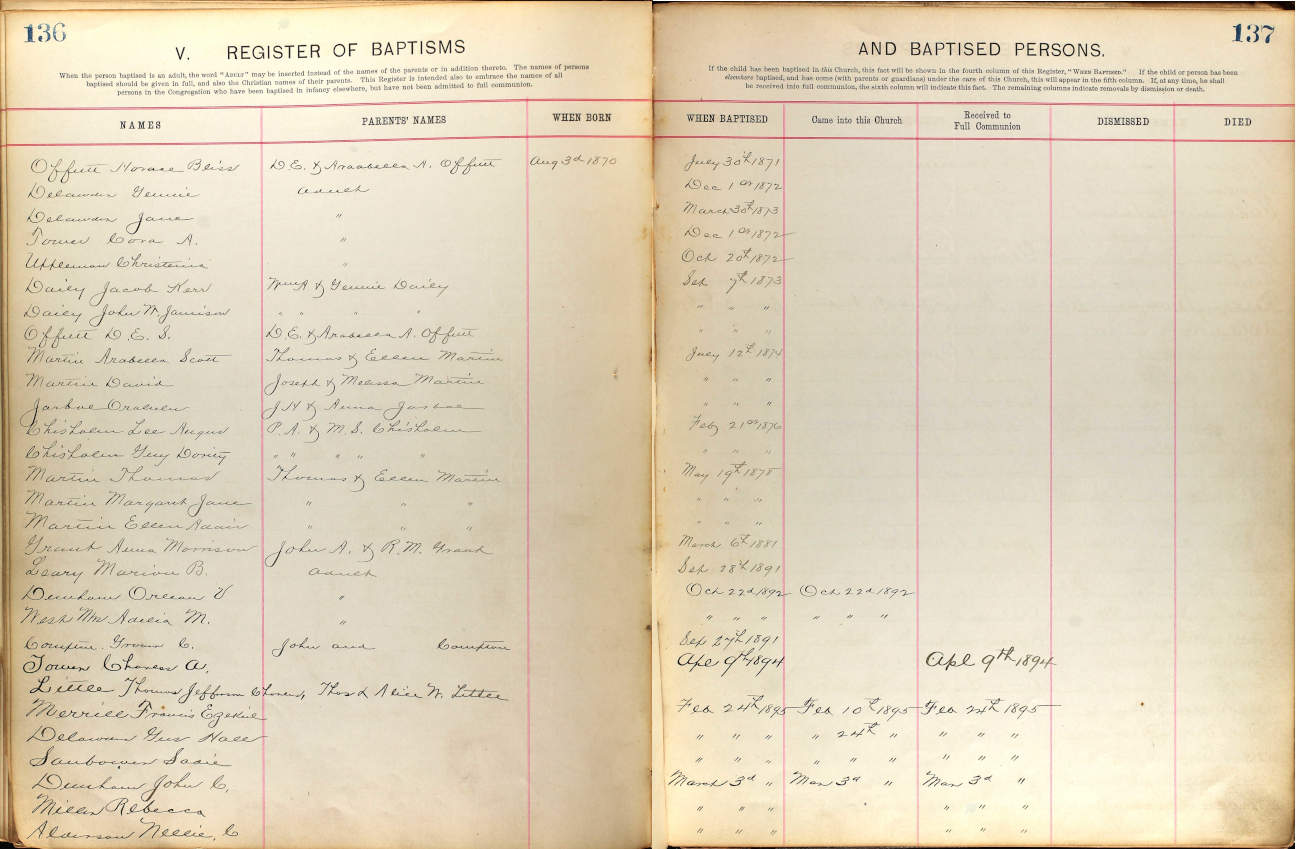 Oakland Presbyterian Church Register 1891 - 1927