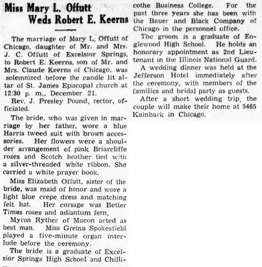 Wedding of Mary L. Offutt & Robert E. Keerns