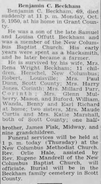 Printed in the Thursday, October 12, 1950 edition of The Cynthiana Democrat on page FOUR
