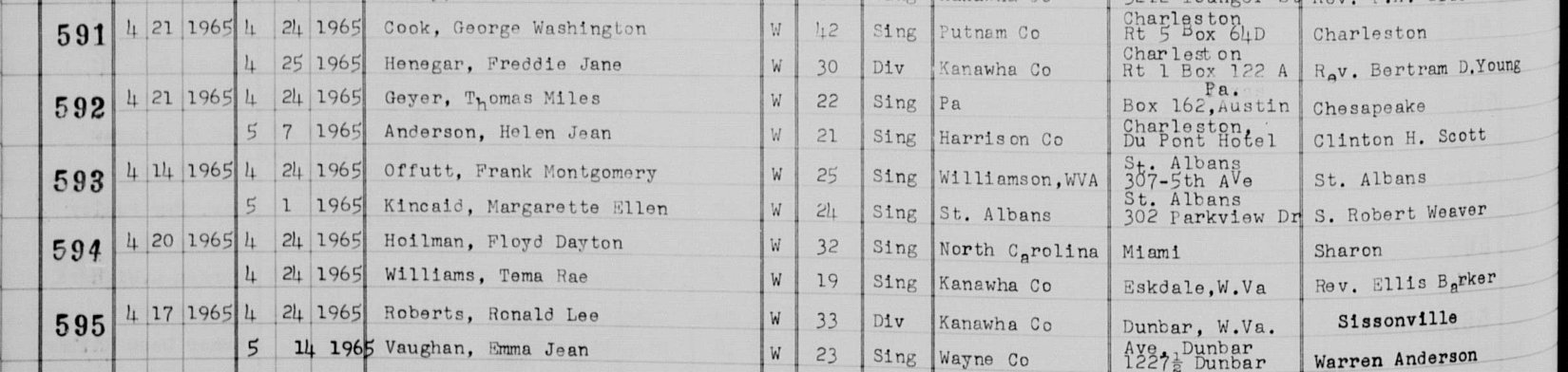 Kanawha County Marriage Register Pg. 196, Marriage Entry 593