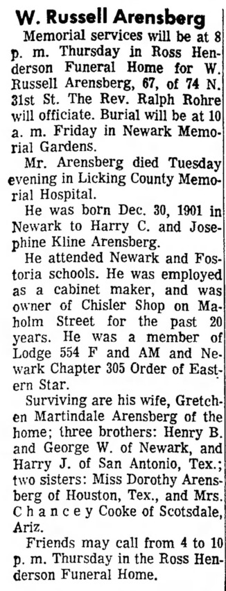 Printed in the Wednesday, May 29, 1968 edition of the Newark Advocate on page 27.