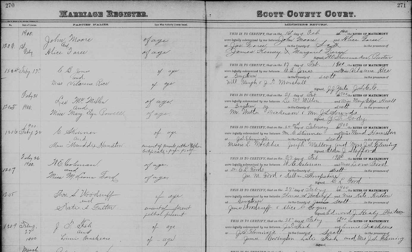 Scott County Kentucky Marriage Register 2, page 270 - 271, marriage 1209