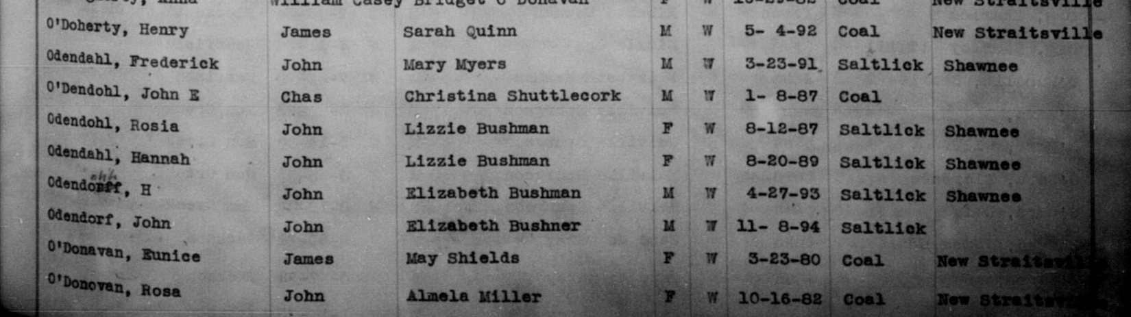 Perry County Ohio Birth Records Index, covers 1867 - 1908