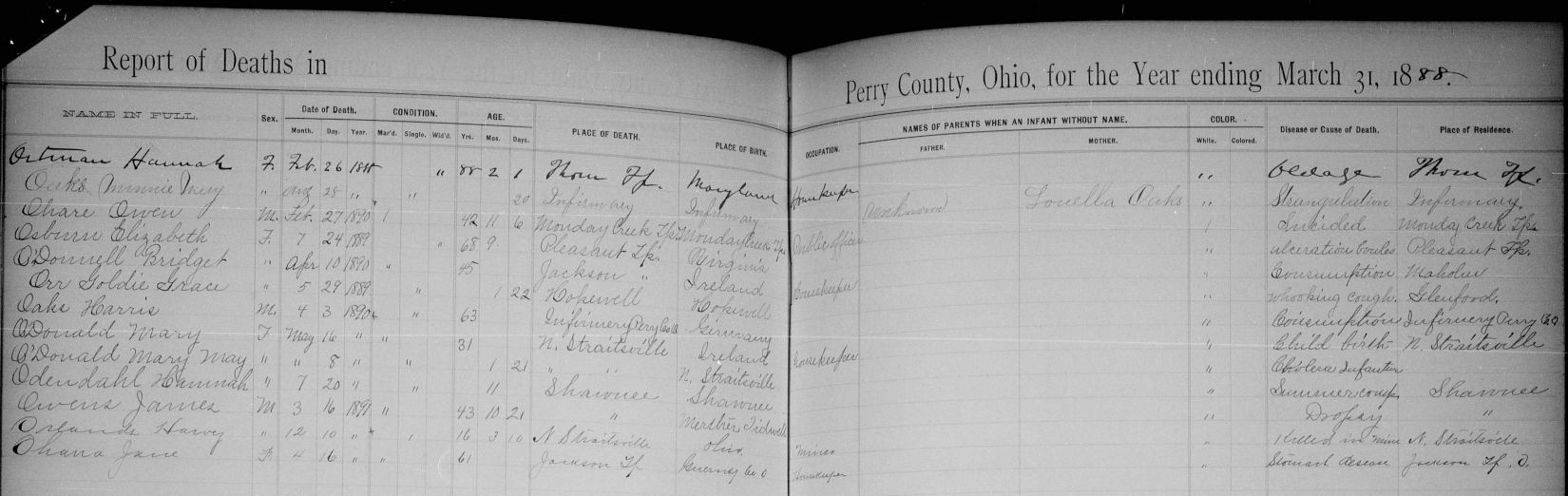 Perry County Ohio Death Register Volume 2, 1887 - 1898