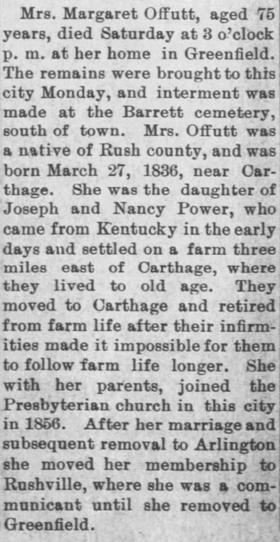 Obituary for Mrs. Margaret Offutt