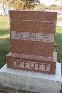 - [S1103] Find A Grave, online http://www.findagrave.com/cgi-bin/fg.cgi, Find A Grave memorial #58379461 . Photo of side of Offutt grave marker. "PHILIP JOHNSON 1906 - 1984; BEA O. JOHNSON 1905 - 1984; EUGENIA STEWARD 1921 - 1980."