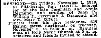 | Father | Jeremiah Desmond d. c 1892 |