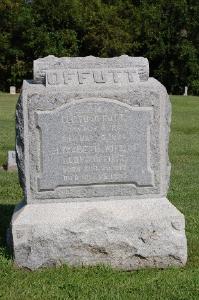 - [S5122] The Hancock Democrat, March 13, 1913, Pg. 8, Printed in the Thursday, March 13, 1913 edition of The Hancock Democrat on page 8. “Thomas Humphrey Offutt - Thomas Humphrey Offutt was born in Scott county, Kentucky, on the 17th day of September, 1838, the son of Lloyd and Elizabeth Offutt. To these parents were born, in Kentucky, eight children, of whom Thomas Humphrey was the second child. Three of these children, Susan Emeline, James and John William, died in early childhood. In 1845 the parents, with the other children, Jane, Margaret, Thomas H., and Louisa and Charles G., left Kentucky and came to Greenfield, Ind., where the home was again made. At this time Thomas Humphrey was seven years of age. During his boyhood, he, with his brothers and sisters, including a younger sister, California, attended the public schools in Greenfield. When a young man Thomas began clerking in the dry goods store of Wallace & Banks, in Greenfield, the junior member of this firm being the late Andrew J. Banks; later he was a clerk in the Heavenridge Dry Goods Store and in the George Walker Dry Goods Store, both in Greenfield. After working in Greenfield for some time he went to Indianapolis, and became the chief floor man, or floor walker, in the store of Tousey & Byram, then one of the leading dry goods stores in Indianapolis. During all of this time he was regarded as an experienced and very successful man in this line of work. Later he returned to Greenfield and learned the carpenter trade, an occupation which he followed to the time of his death, with the exception of the years from 1894 to 1900, when he was the bailiff of the Hancock Circuit Court. During his early manhood he was also a member of the old Saxhorn band in Greenfield, the Eastman band, which Riley has immortalized in his poems. In 1861 Thomas Offutt was united in marriage to Miss Sallie Gephart. To this union were born two children, Elmer Lloyd Offutt, who died when he was seven years old, and Cora Belle Huffman, who is now living. In early life Thomas Offutt became a member of the Christian church of this city, which church he attended for many years. However, of later years he has attended the Presbyterian church, of which, at the time of his death, he was the care-taker. Until about a week before his death, Thomas Offutt had enjoyed exceptionally good health; however, during the present winter, he complained some of not feeling well, but there seemed to be nothing seriously the matter with him. But, on Tuesday, February 25th last, he became seriously ill with pneumonia. This sickness gradually overcame him, until in the morning of March 3rd he died, aged 74 years, 5 months, and 16 days. He left surviving him, his widow, one daughter, Mrs. Cora Huffman, three grandchildren, Mrs. Helen Addison, Mrs. Mary Friel, and John Dowling; also three sisters, Mrs. Jane Barnett, Mrs. Louisa Taylor, and Mrs. California Beecher; and a large number of relatives and friends. The story of the life of Thomas Offutt is the story in some degree at least of the life of Greenfield. He came to Greenfield in 1845, when Greenfield was a mere town, with no streets improved and no improved sidewalks and with few of the buildings that are now standing. During practically all the years since then Thomas Offutt has lived in Greenfield, mingling with its people, sharing their life, their joys, their sorrows, being a part of the life of this city for over sixty-eight years. The older people now living knew him well, and he was more or less known to all the people who have been in Greenfield in after years. And in the minds and hearts of all these people during all of these sixty-eight years, Tom Offutt has had a warm place. Kind of heart, genial, honest as the day is long, a conscientious workman, absolutely true to his word and his friends, devoted to his wife and family and grandchildren, he was a true gentleman. And when the soul of Thomas Offutt went to its Maker, another of Greenfield’s true-hearted men went home.” (Please note that the age they give would by a date calculator indicate that if born September 17, 1838 he would have died on March 5, 1913, not the third).