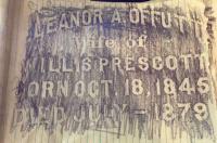 - [S1103] Find A Grave, online http://www.findagrave.com/cgi-bin/fg.cgi, Find A Grave memorial #127738037. Photo of grave marker. "ELEANOR A. OFFUTT WIFE OF WILLIS PRESCOTT BORN OCT. 18, 1845 DIED JULY 1879."