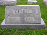 - [S1103] Find A Grave, online http://www.findagrave.com/cgi-bin/fg.cgi, Find A Grave memorial #34473583. Photo of shared grave marker. "OFFUTT; MABEL U., MAR. 26, 1891 - MAR. 3, 1966; LAWRENCE H. SR., MAR.10, 1894 - JAN. 26, 1961; MARY S. TAYLOR. 1872 - 1942."