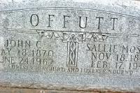 - [S6670] April 4, 1930 Federal Census, 700 Pennsylvania AVE, NW, Washington, DC, USA, Population Schedule : Vaugine Township, Pine Bluff City, Jefferson County, AR, Dwelling 178, Family #192. Line 42 lists Edward B. Offutt, age 48, age at first marriage 31, born in AR, Occupation Salesman, Industry monuments. Line 43 lists wife Mary S., age 38, age at first marriage 21, born in AR. Line 44 lists son John C., age 16, born in AR. Line 45 lists daughter Sarah A., age 14, born in AR.
