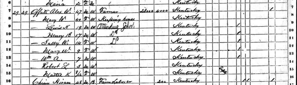 1870 Federal Census; 1st District, Shelbyville, Shelby County, KY