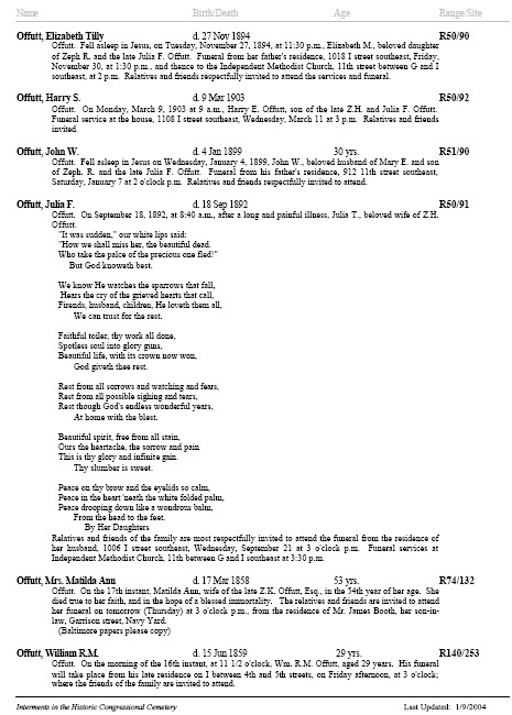 Congressional Cemetery; Washington, DC. Offutt Information Page 1