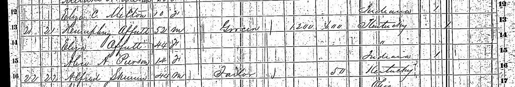 1860 Federal Census; Center Township, Hancock County, Indiana