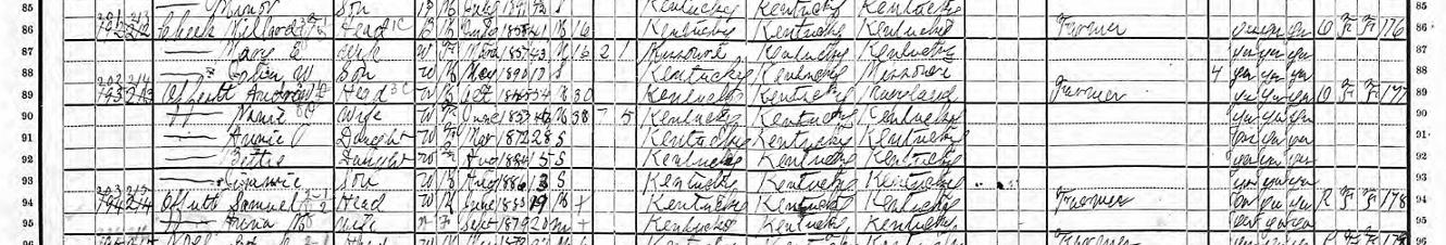 1900 Federal Census; Magisterial District No. 6, Spencer County, KY. Household of Samuel Offutt