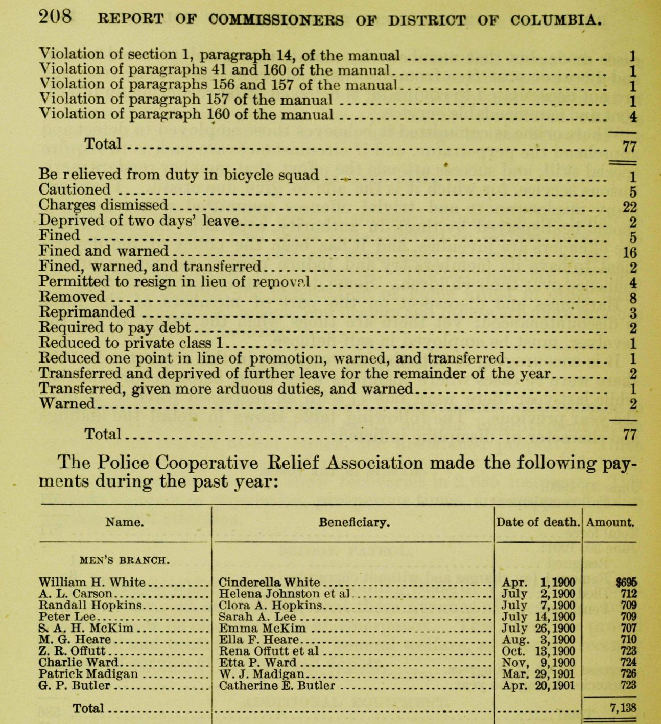 Pg. 208 showing death benefit for Z. R. Offutt paid to Rena Offutt, et al