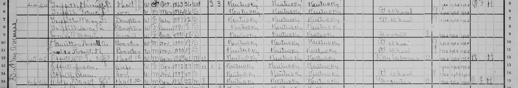 1900 Federal Census; Georgetown, Scott County, KY. Household of Wm. T. Offutt