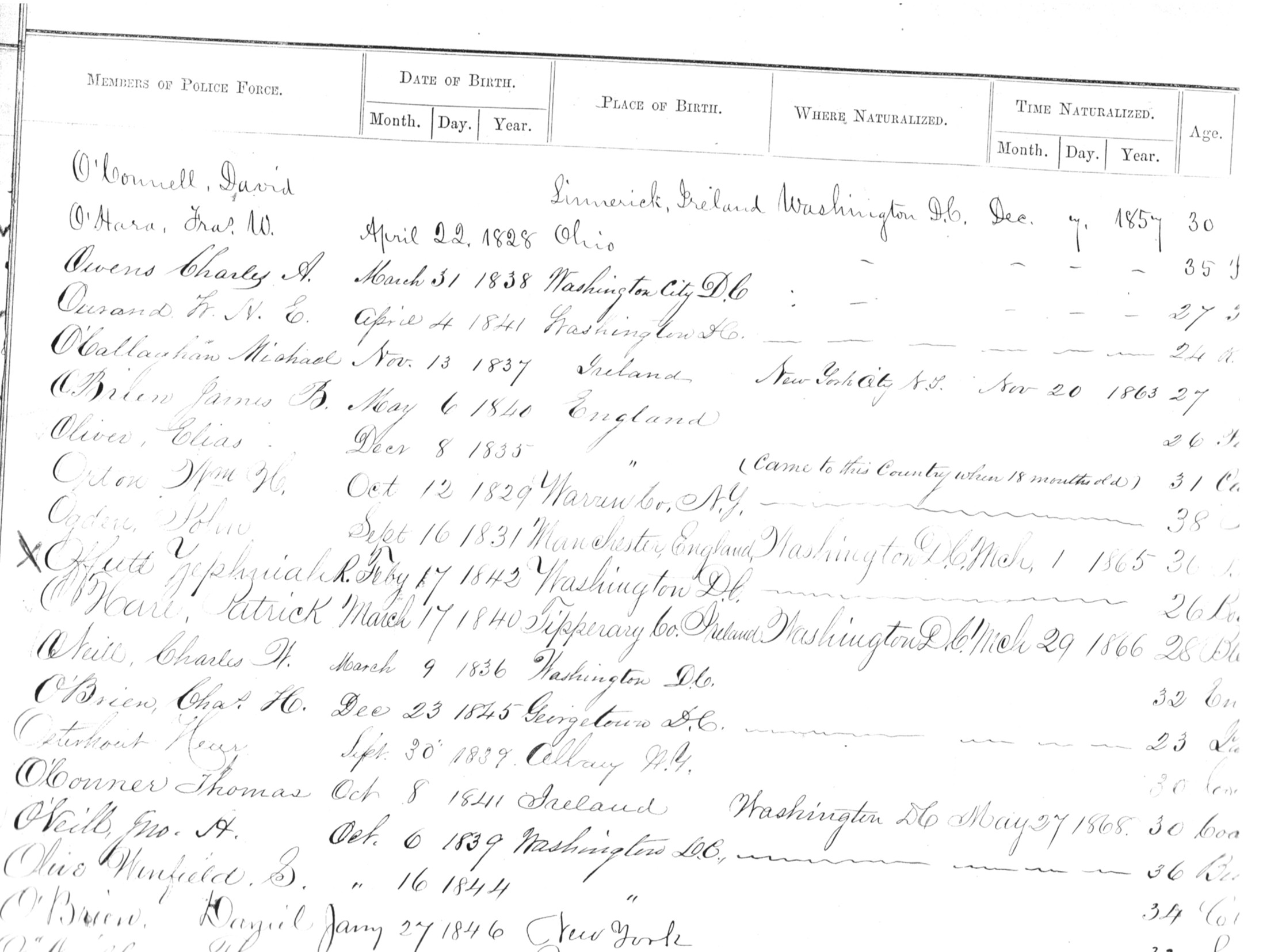 Register of Appointments for the Metropolitan Police Department, Washington, D.C.