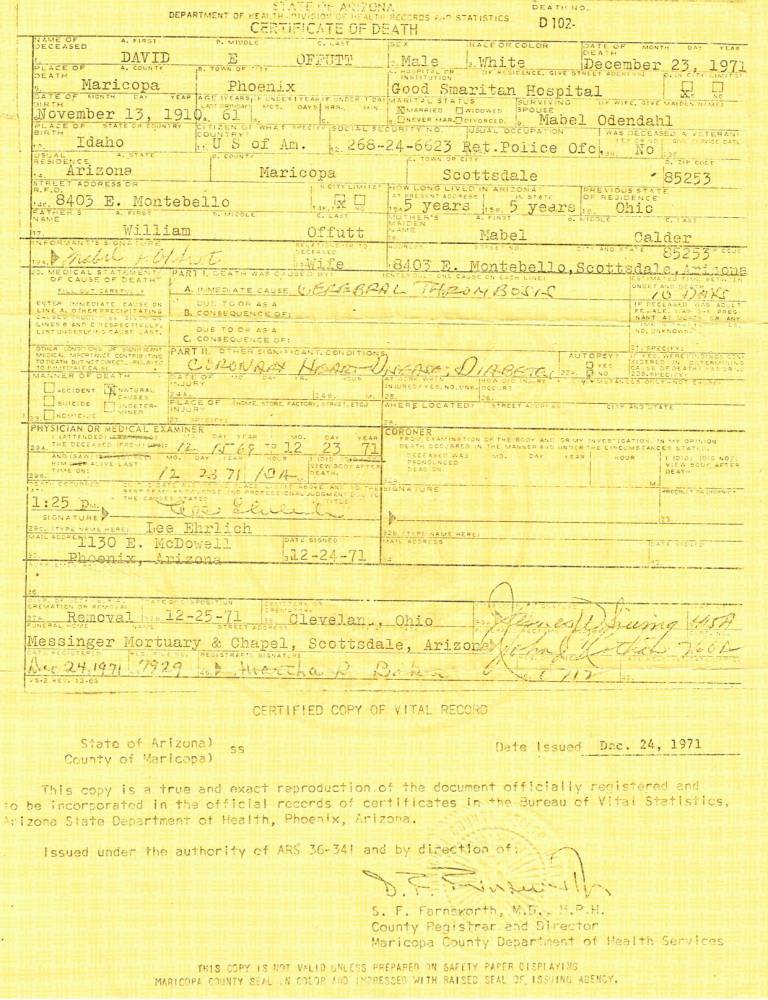 AZ Death Certificate for David E. Offutt