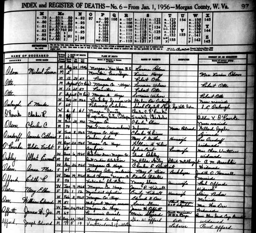 Morgan County West Virginia Death Record for James W. Offutt Jr.