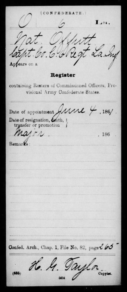 Promotion to Major; Compiled Service Records for Nathaniel G. Offutt, 6th LA Infantry, C.S.A.; Page 18