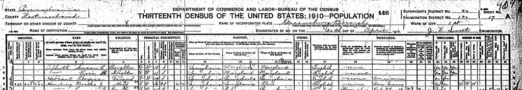 1910 Federal Census of Greensburg Borough, Westmoreland County, PA. Household of Lemuel Offutt
