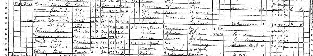 1900 Federal Census of the 9th Precinct, Denver, Arapahoe County, CO. Household of Edward D. Jones, listed is Ross Offutt