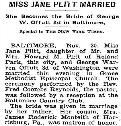 Wedding of Miss Jane Plitt to George Warren Offutt III