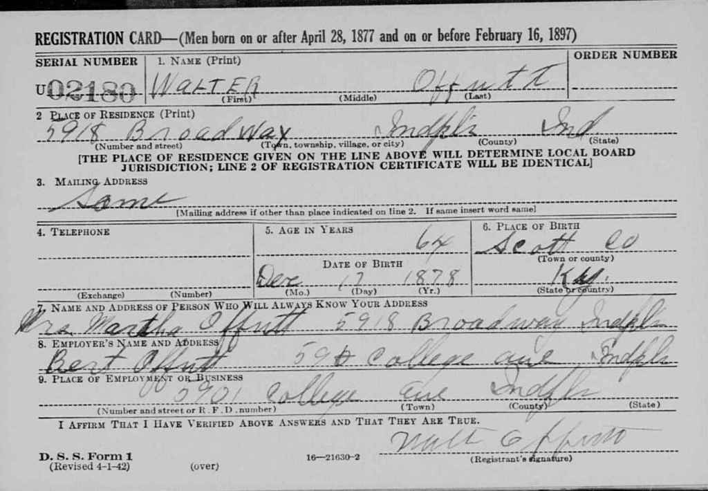 4th Draft Registration; Walter Offutt