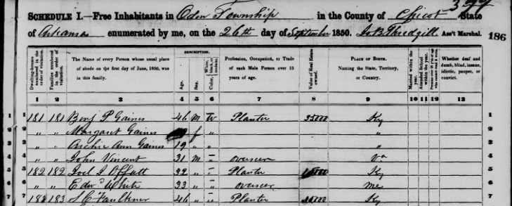 1850 Federal Census of Oden Township, Chicot County, AR. Household of Joel J. Offutt