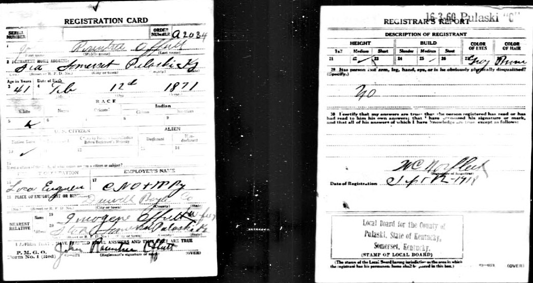 World War I Draft Registration; John Rowntree Offutt