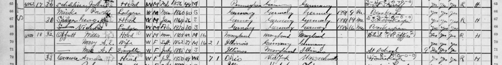 1900 Federal Census; 30th Ward, Chicago, Cook County, IL. Household of Willis Offutt