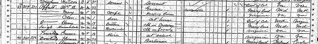 1880 Federal Census; Georgetown, District of Columbia. Household of Wm. A. Offutt
