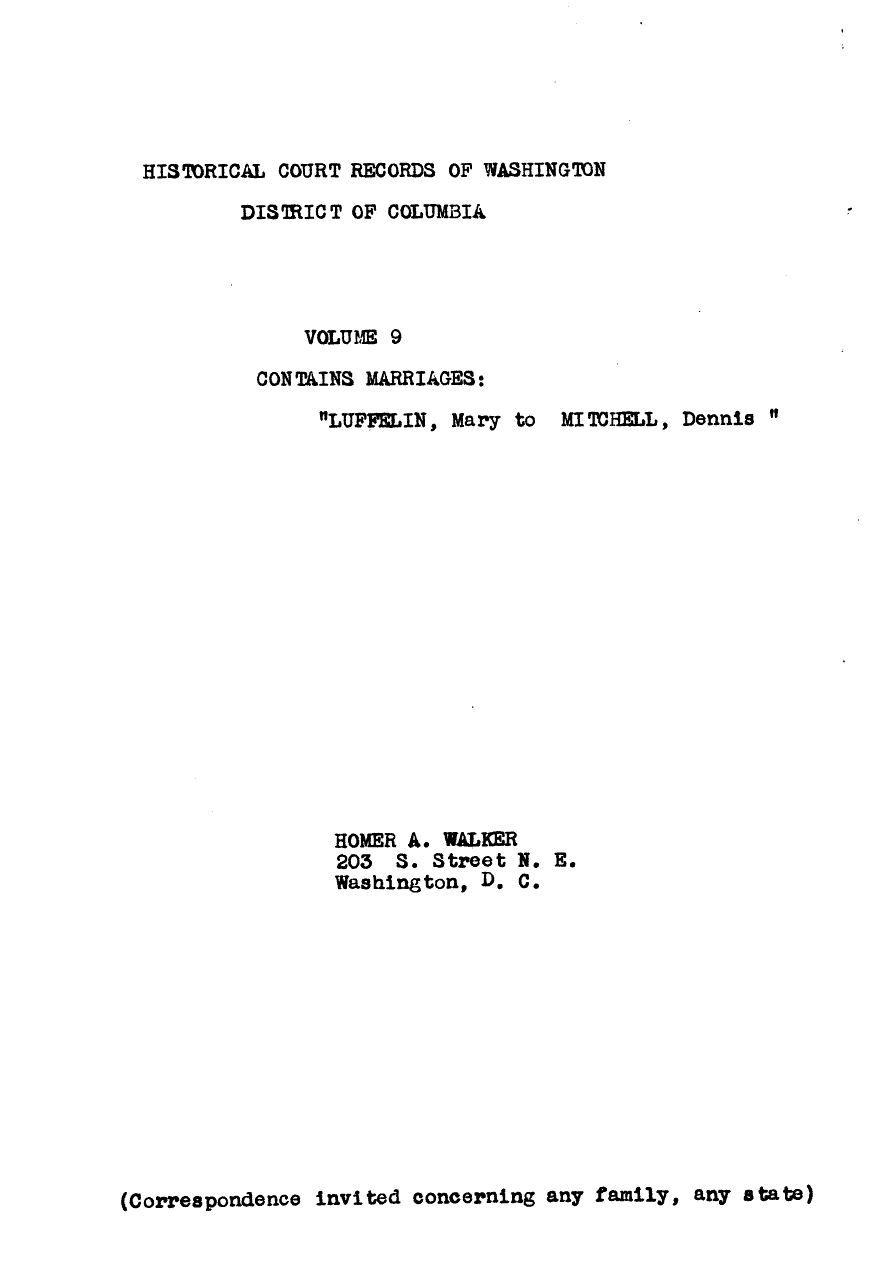Title Page from Volume 9 of Historical Court Records of Washington, DC