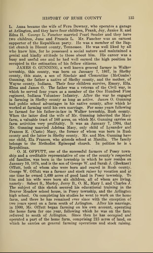 Page 135 of Centennial History of Rush County, Indiana; Volume II. Biography of O. M. Offutt