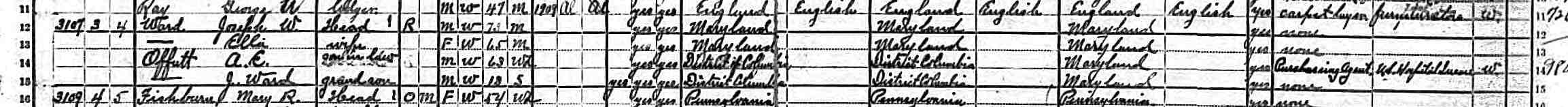 1920 Federal Census; Washington, DC. Household of Joseph W. Ward
