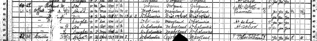 1900 Federal Census; Washington, DC. Household of Wm. A. Offutt
