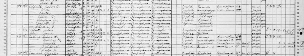 1910 Federal Census; Springfield, Mercer County, PA. Household of John C. Offutt