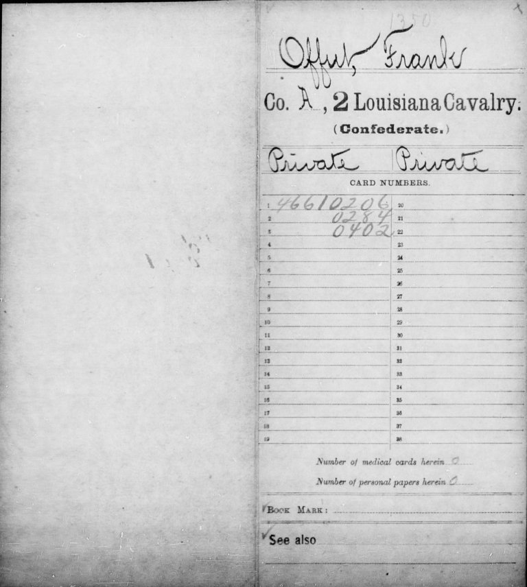 Compiled Service Record for Frank Offut, 2nd LA Cavalry CSA