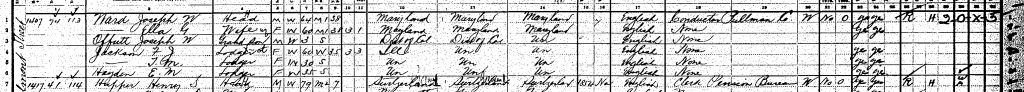 1910 Federal Census; District of Columbia. Household of Joseph W. Ward