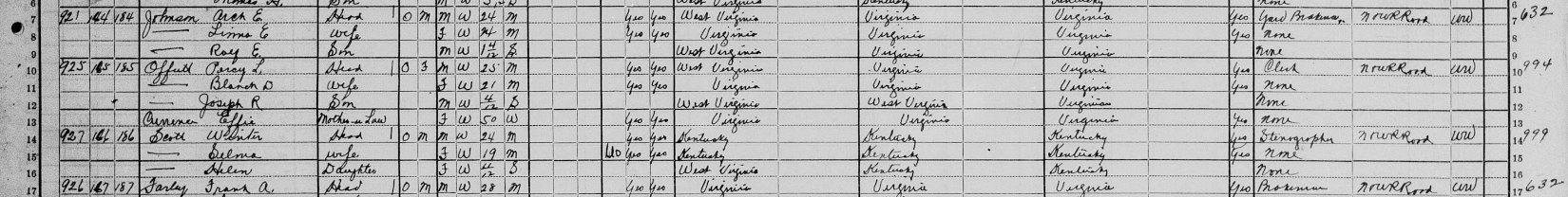 1920 Census of Bluefield, Mercer County, WV; Percy L. Offutt