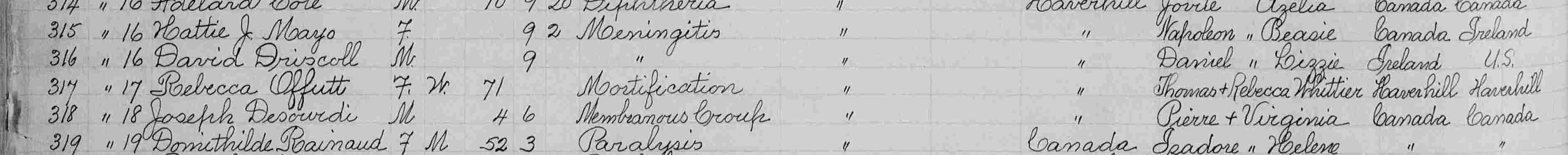 Death Register for Haverhill, MA, lists Rebecca Offutt