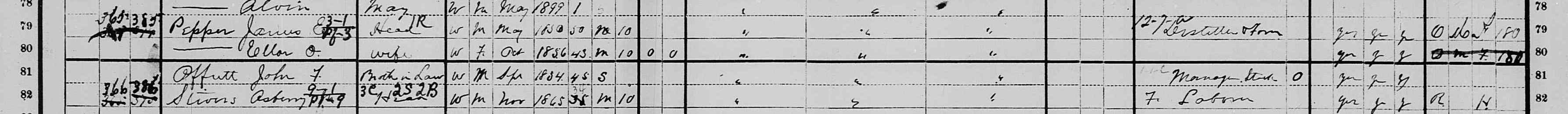 1900 Federal Census; 7th Voting Precinct, Fayette County, KY. Household of James E. Pepper